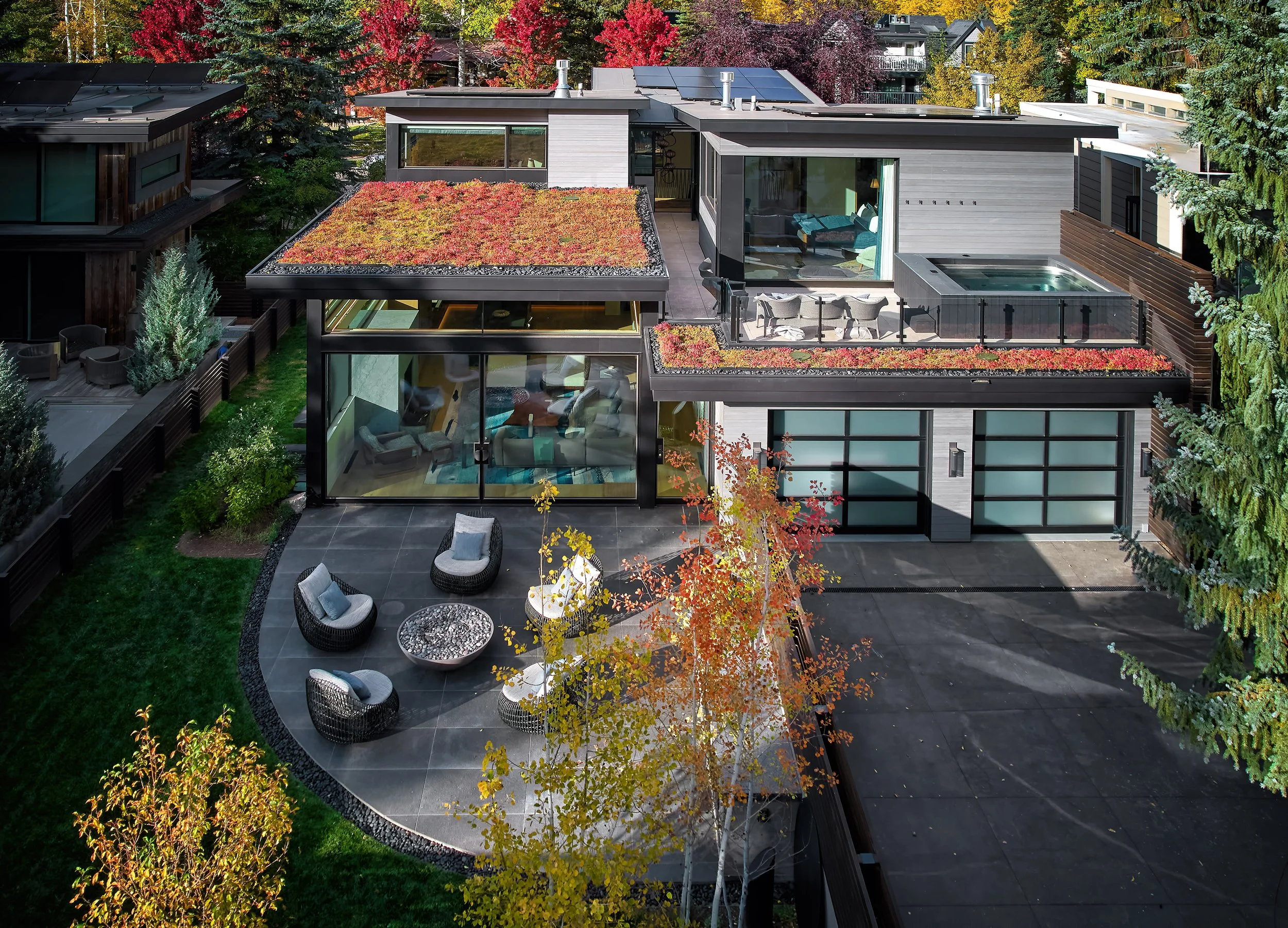 Use radiant-heated floors, retractable screens, and well-placed fire elements to extend shoulder seasons and invite use beyond summer.